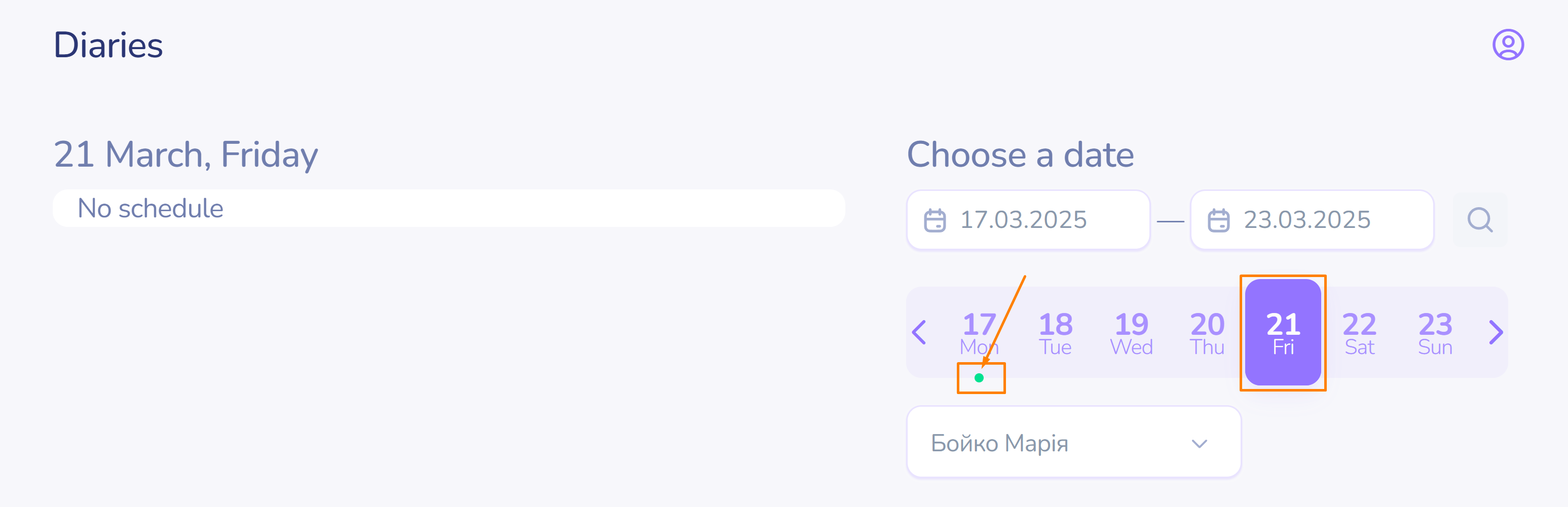 - The date carousel allows you to choose the date from the list.