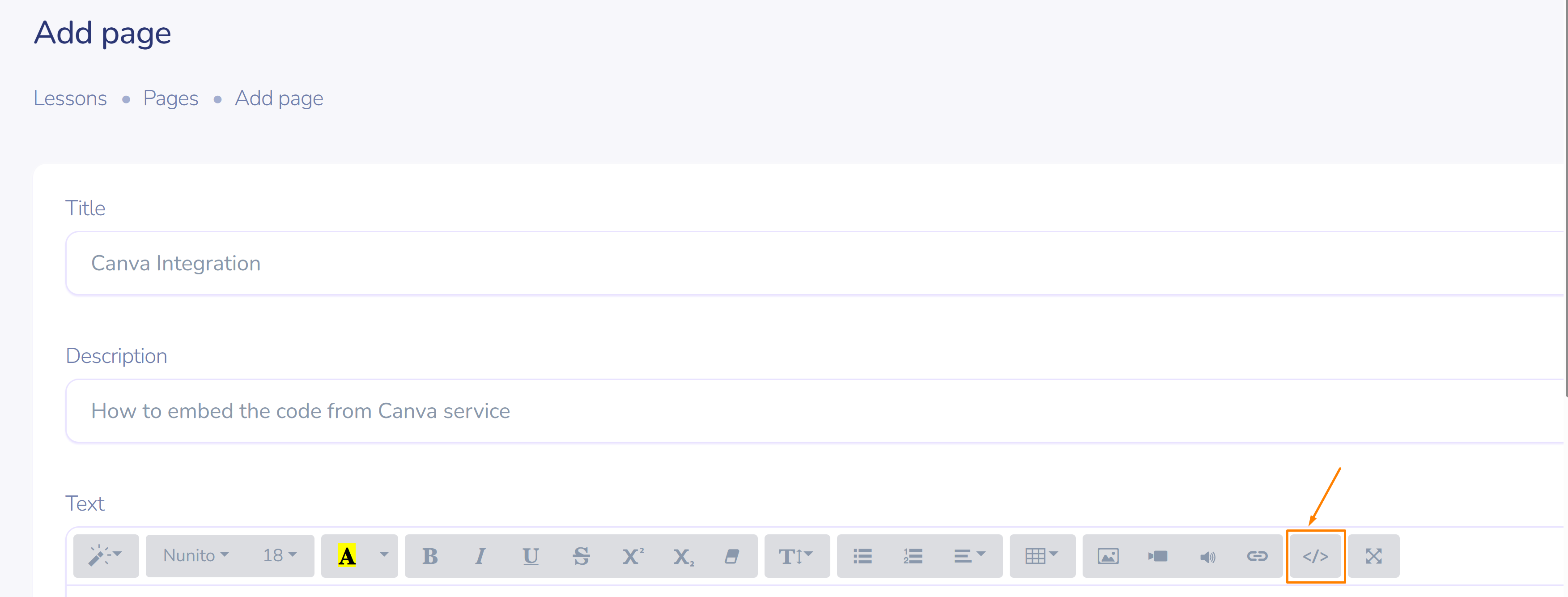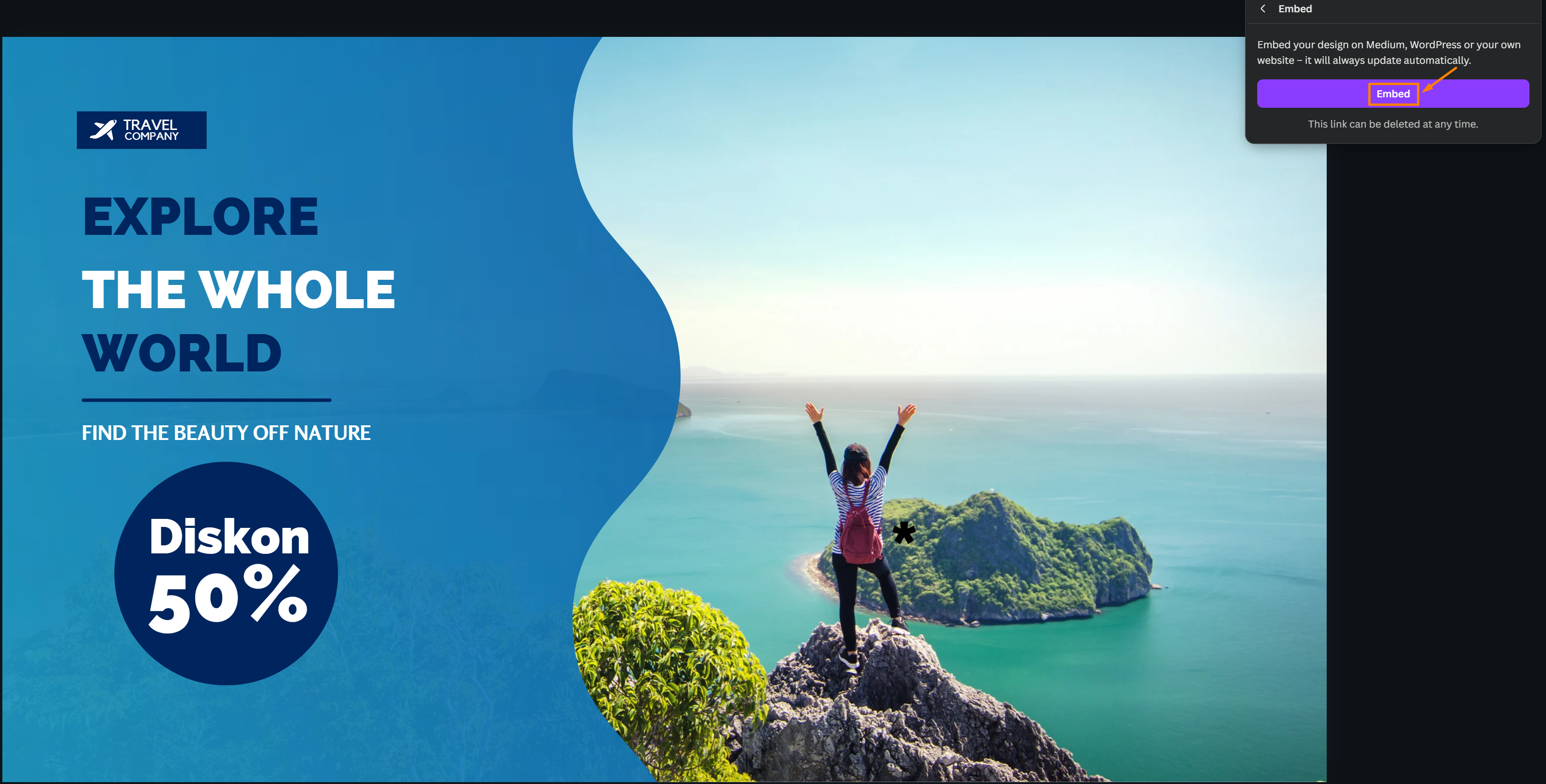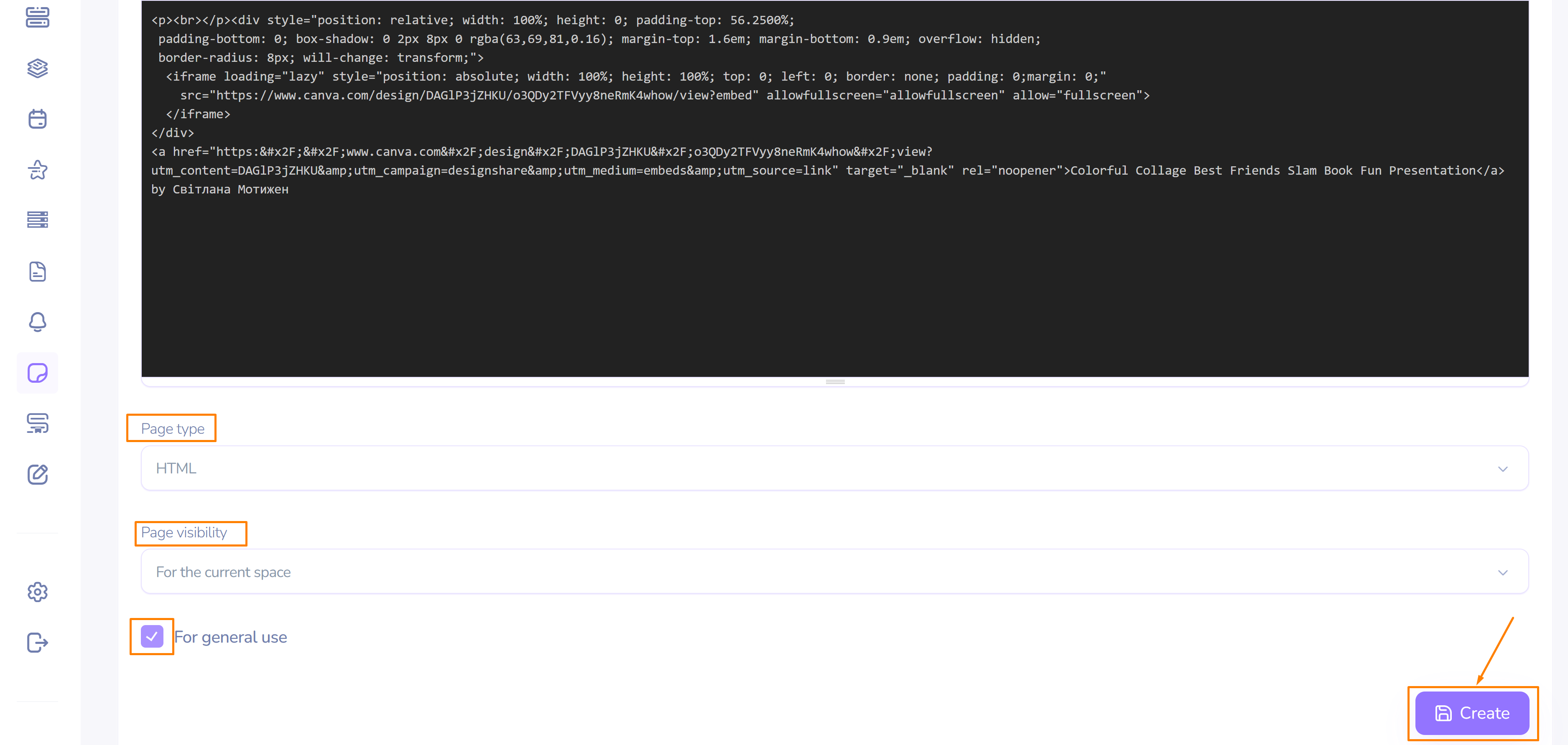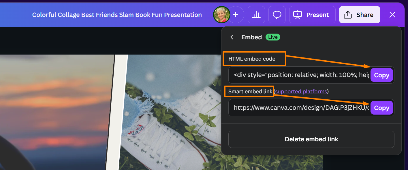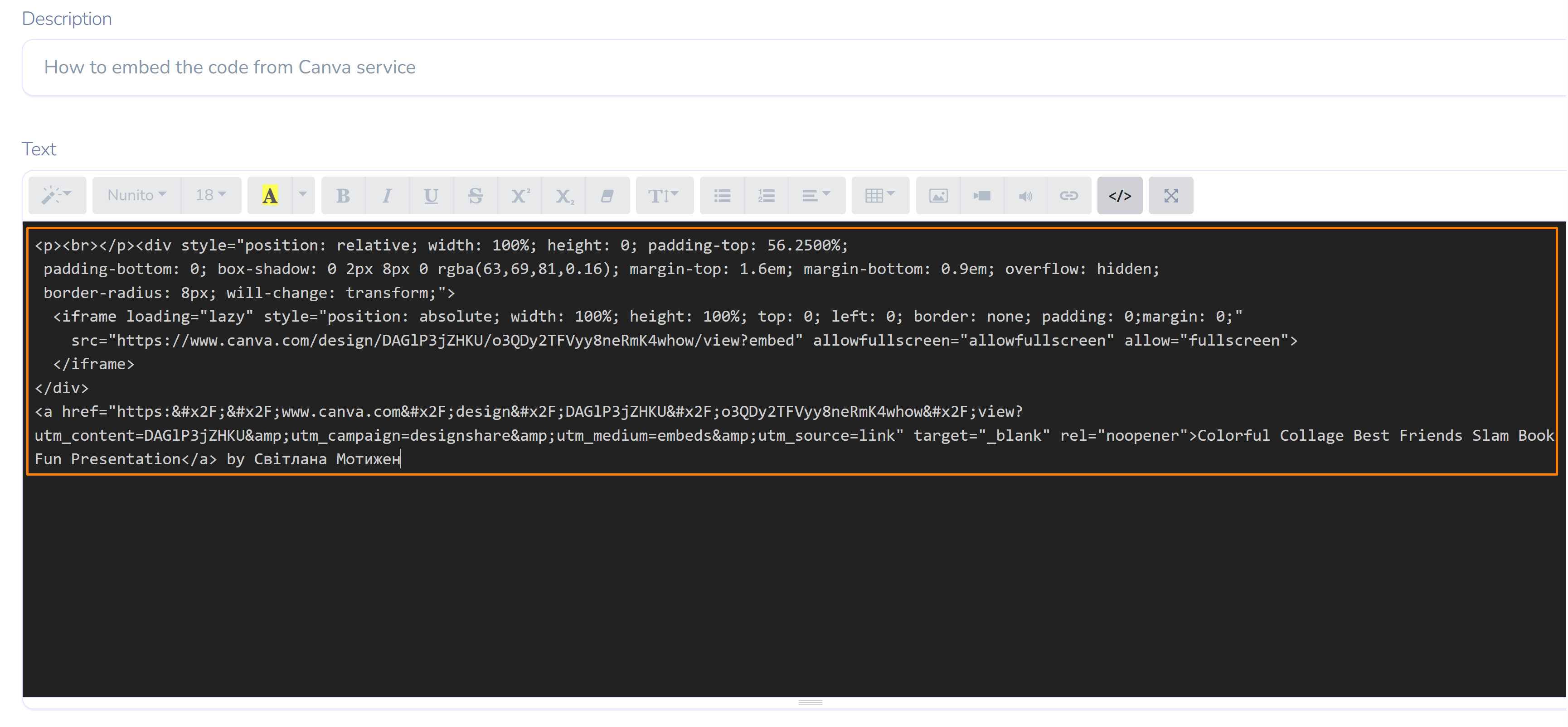 How to integrate a presentation or set of slides created via Canva with the help of a code