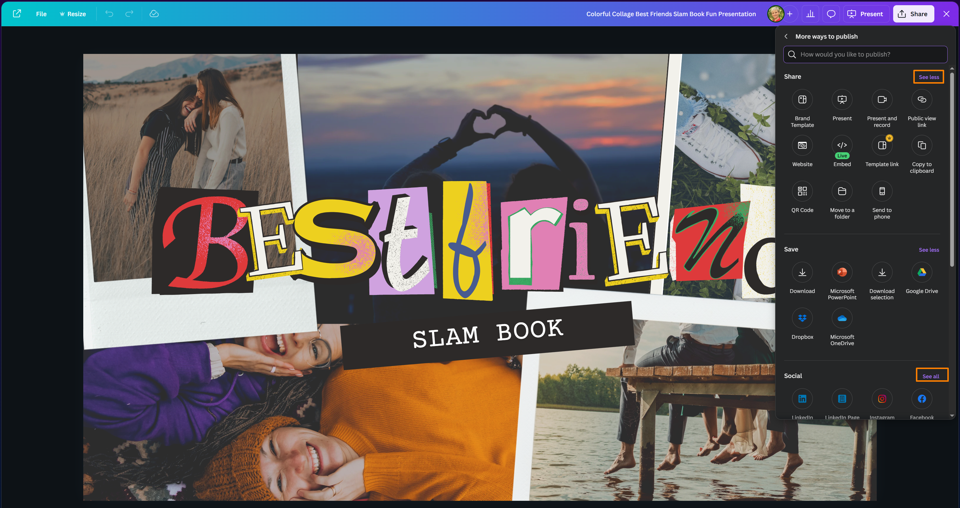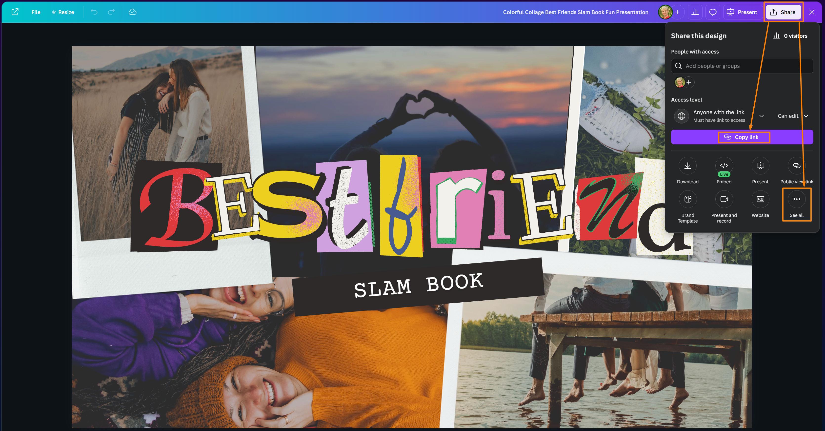 - Make all necessary changes. Click Share in the top right corner and select See all.