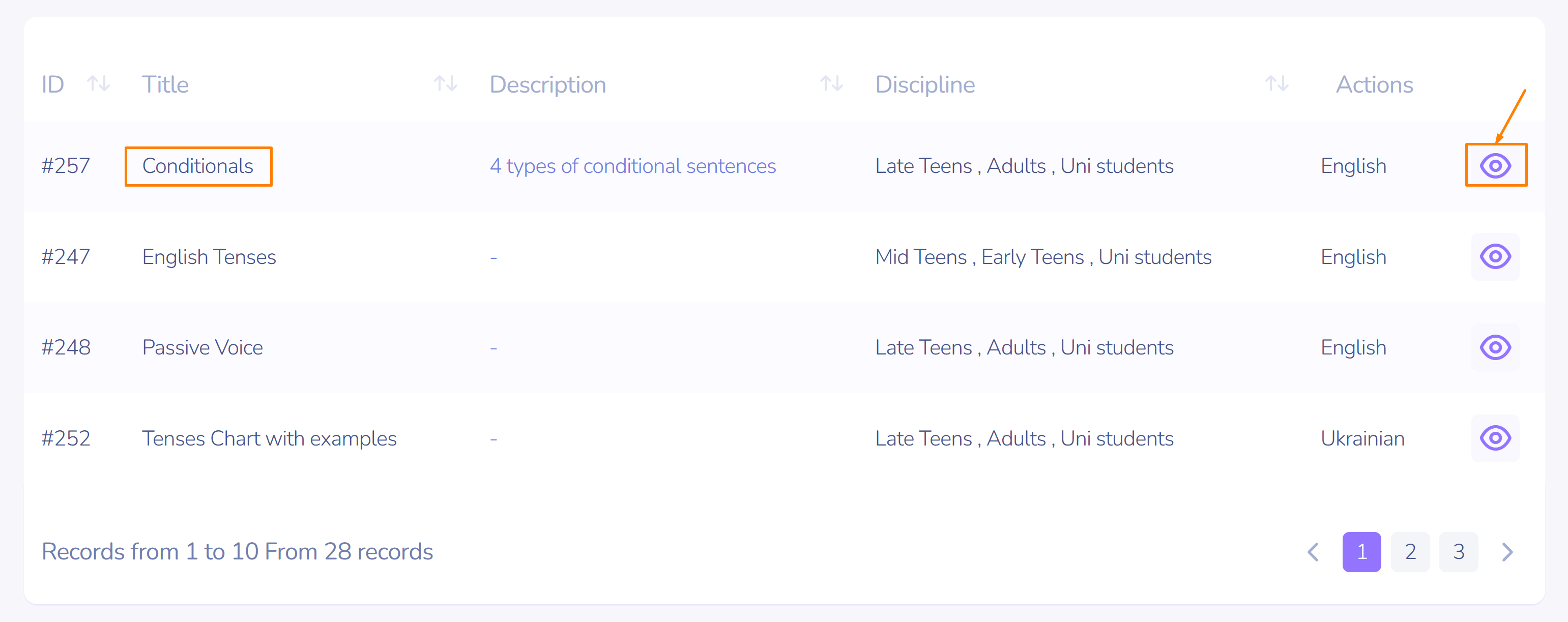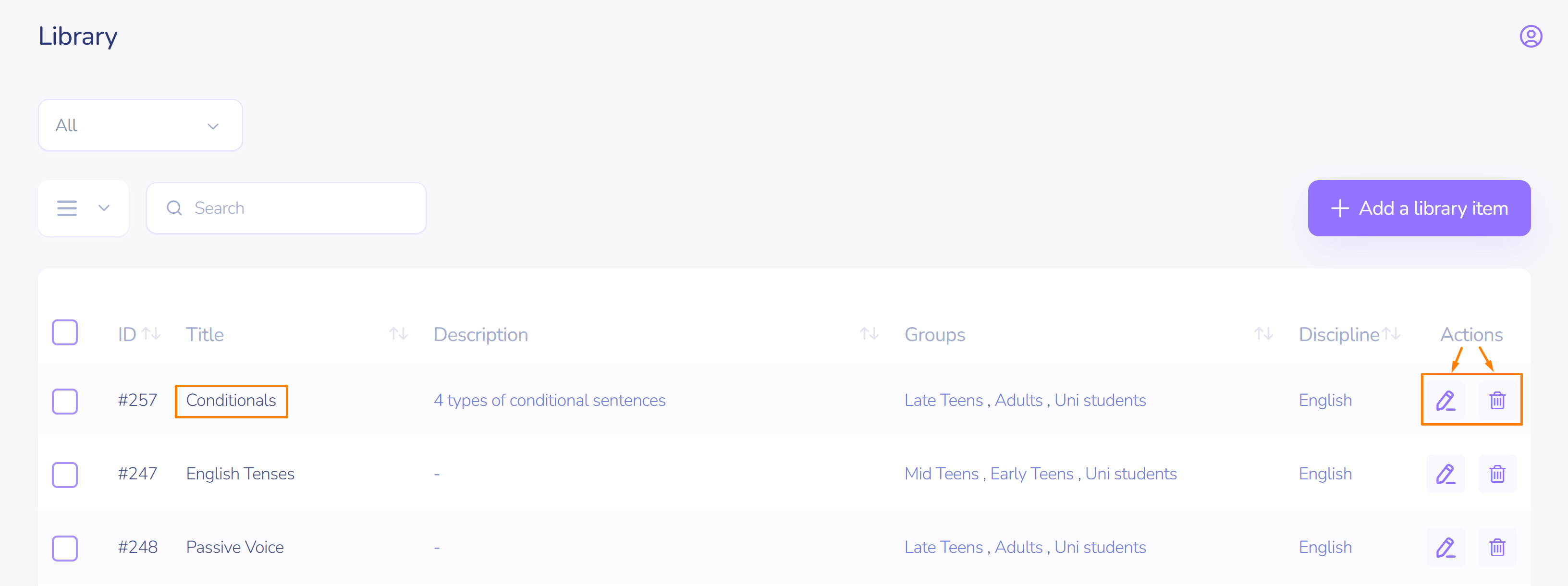 You can view the required library item with the help of view button on the right in the actions section.