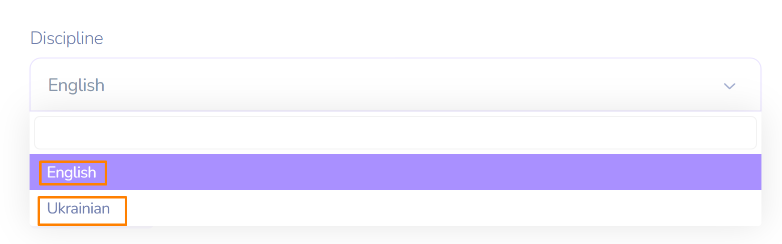 - In the second cell, select the discipline (multiple selections are possible).