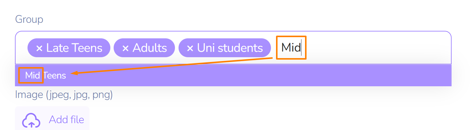- In the first cell, select the group (multiple selections are possible).