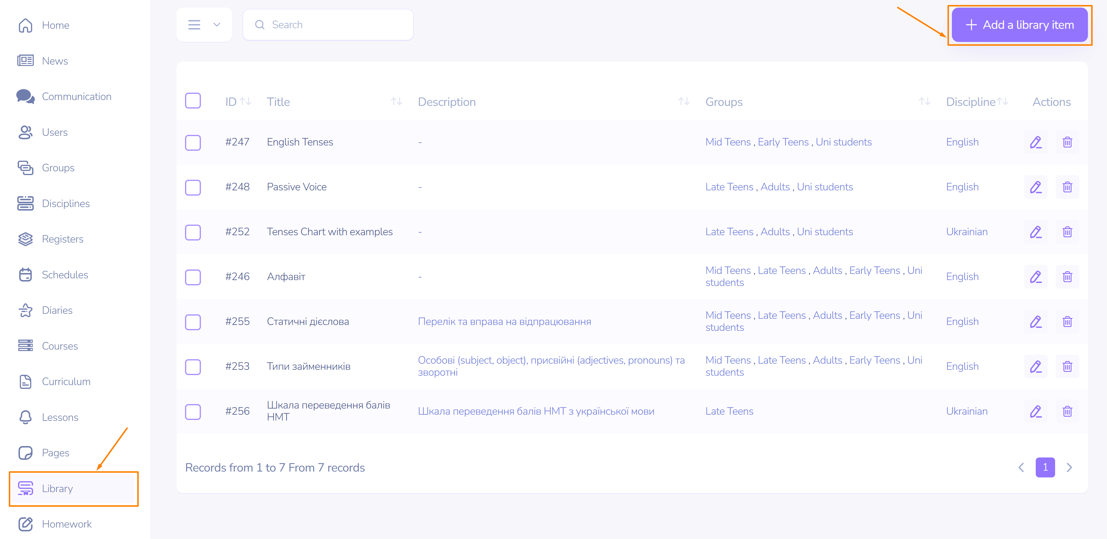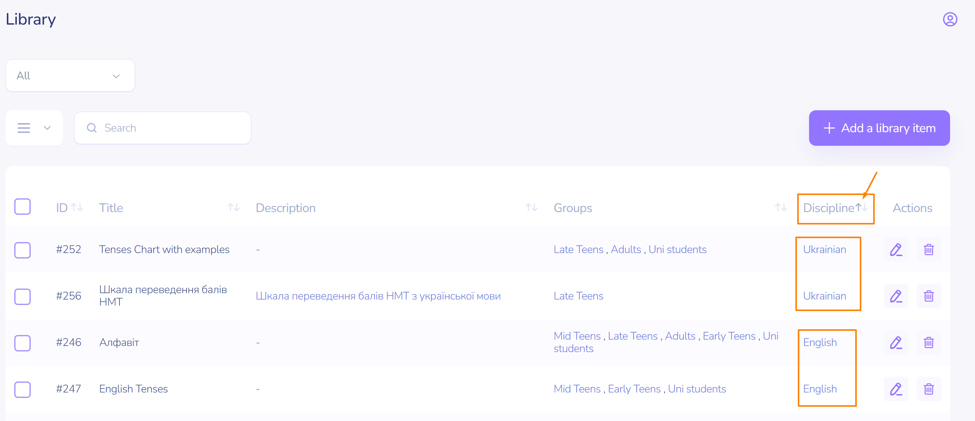 Attention! It is necessary that all groups should be subscribed to study the discipline. You can always change that in main menu side bar by clicking here.